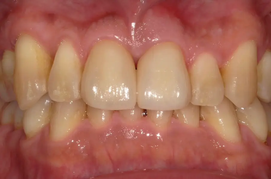 • 歯ぐきとの境が黒く変色することがある